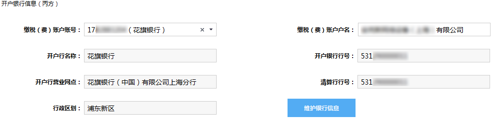 2.開戶銀行為網簽上線銀行、納稅人名稱與繳款賬號名稱必須同名才能辦理。如納稅人名稱與繳款賬號名稱中含有如“(上海)”、“(有限合夥)”等字樣的,請確認兩者的括弧是全形“(”、“)”還是半角“(”、“)”,需完全一致才能辦理全程網簽。存在其他特殊字符的,也請按此規則操作。