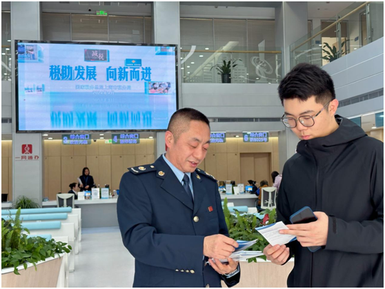 春風不負年年信,恰逢四月稅宣時。浦東新區稅務局在金橋鎮稅務社會共治點、連池勞模創新工作室第二十三稅務所金橋延伸點開展“稅助發展 向新而進”稅收宣傳活動。期間大螢幕滾動播放稅收宣傳片,稅務幹部則搭建起涉稅諮詢服務台,針對來往納稅人繳費人廣泛關注的問題,“一對一”宣傳高新技術企業稅收優惠政策、小型微利企業所得稅優惠政策、居民換購住房等稅收優惠政策和便利辦稅、社保繳費、證明開具等便民服務舉措,以精準輔導、貼心服務點亮稅宣“好風景”。