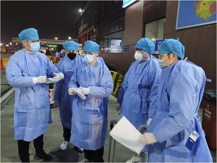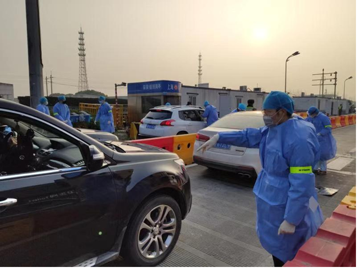 道口查控是上海打贏疫情防控阻擊戰的第一道防線。很快,第一批預報名的6位志願者就接到了第一道“戰令”。29日清晨5點20分,志願者就已全部到達G15沈海高速朱橋道口。在對接醫生的指導下,稅務幹部首先進行自身消毒防護、學習儀器使用方法、了解處置流程。與交通執法人員、公安民警、衛生防疫人員等共同組成的聯防聯控小組,實施“逢車必檢”,對每輛入滬車輛的每位乘員進行細緻排查,包括現場使用耳溫槍檢測體溫、詢問入滬人員近期出行史資訊等。
