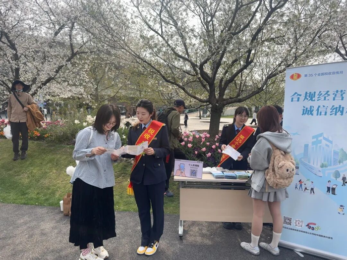 松江區稅務局走進辰山植物園,正值踏青賞花季,在園內客流集中區域設置稅收宣傳服務站,面向遊客與商戶發放宣傳資料。稅務幹部主動靠前服務,耐心解答涉稅疑問,細緻講解操作流程,將誠信納稅理念融入遊園體驗。
