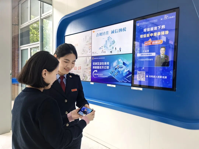 奉賢區稅務局以增值稅法下的增值稅申報表輔導為主題,舉辦稅收宣傳月“雲上活動日”直播活動,直播期間,稅務幹部引導前來辦稅服務廳辦稅的納稅人觀看直播、參與線上互動,準確掌握申報表填報規範,進一步提升依法申報、合規經營的法治意識。