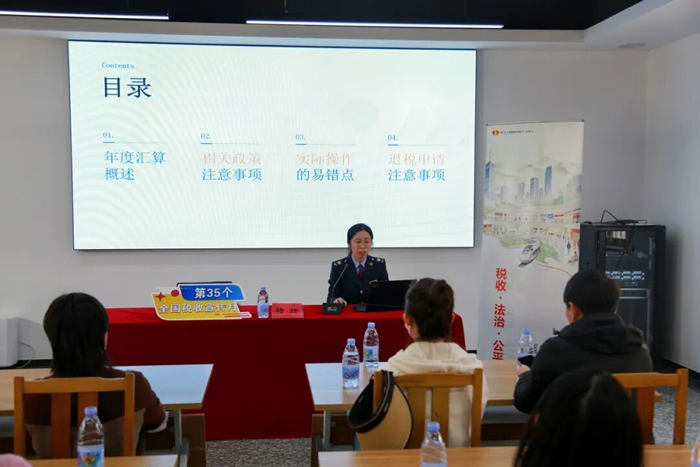 虹口區稅務局走進上海中醫藥大學附屬岳陽中西醫結合醫院,開展稅收宣傳活動。重點講解個稅年度匯算、專項附加扣除、全年一次性獎金計稅、個稅App填報流程等內容,現場解答申報易錯點、疑難事項,提供個性化、專業化政策指導,助力納稅人依法納稅。