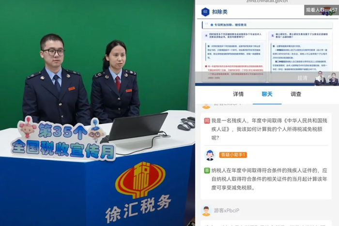 徐匯區稅務局依託線上直播平臺開展稅收宣傳月專題培訓。稅務骨幹圍繞個稅年度匯算熱點內容,結合實操案例細緻解讀、實時互動答疑,幫助納稅人繳費人明晰政策要點與辦理流程,切實提升依法納稅意識。