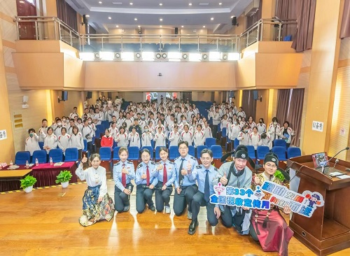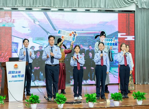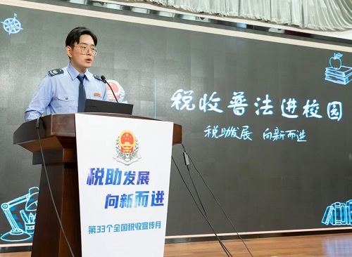 活動中,“詩詞稅收連連看”環節將這堂特殊的“語文課”推上了小高潮,同學們積極運用講座和思維導圖中學習到的稅收小知識參與問答,在探尋古詩詞中的稅收足跡的同時,也將誠信納稅的理念種進心田。最後,稅務幹部登臺演唱了由海底撈生日歌填詞改編的歌曲《稅月逐夢》——“和所有的優惠説嗨嗨”“減稅費的帳單一起曬曬”,耳熟能詳的旋律獲得了師生的積極共鳴和熱烈掌聲,也進一步鞏固懂稅、護稅、依法納稅的共識。