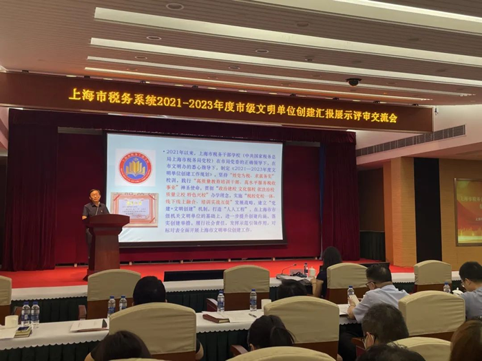 會上,創建2021-2023年度上海市文明單位的新申報和復評單位負責人採取PPT演示和口頭彙報相結合的形式,圍繞創建指標內容,就創建情況、創建成效等作集中風采展示,在交流互鑒中健全“黨建+文明創建”機制,進一步激發文明創建活力,踐行“忠誠擔當、崇法守紀、興稅強國”的稅務精神。