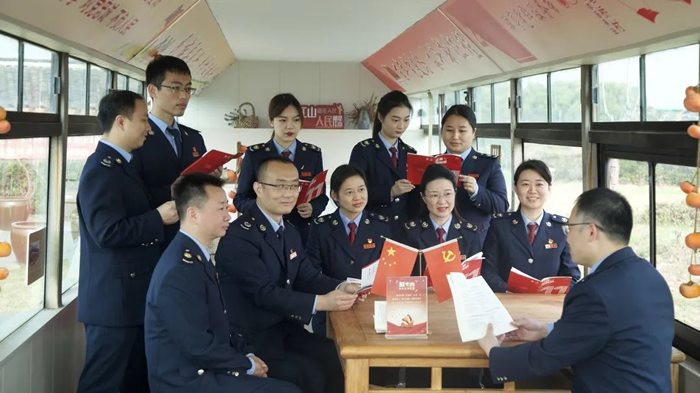 崇明區稅務局第二十一稅務所將稅收事業與特色産業相融合,深入推進政治機關建設,打造“稅小橘”志願服務品牌,持續開展“三色橘·志願行”活動,從愛心幫扶、生態保護、稅費支援三方面為鄉村振興注入稅動力,助力崇明世界級生態島建設。