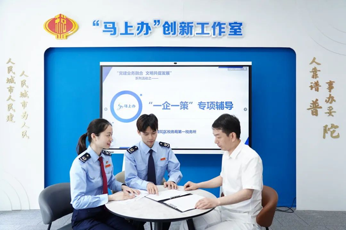 普陀區稅務局第一稅務所依託“馬上辦”創新工作室,聚焦群眾“急難愁盼”,為納稅人繳費人提供“一對一”快速響應、“所有”精準服務、“一條龍”協同聯動等個性化稅費服務,實現“好辦”“快辦”“幫辦”。