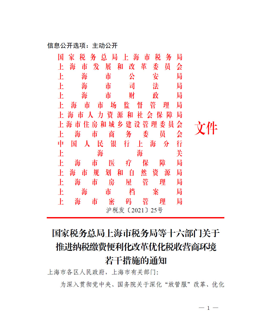 為深入貫徹黨中央、國務院關於深化“放管服”改革、優化營商環境的決策部署,根據《優化營商環境條例》《國務院辦公廳關於進一步優化營商環境更好服務市場主體的實施意見》《上海市優化營商環境條例》要求,認真落實《稅務總局等十三部門關於推進納稅繳費便利化改革優化稅收營商環境若干措施的通知》和《上海市加強改革系統整合持續深化國際一流營商環境建設行動方案》,進一步推進納稅繳費便利化改革、持續提升為市場主體服務水準、加快打造市場化法治化國際化稅收營商環境,現就有關事項通知如下 :