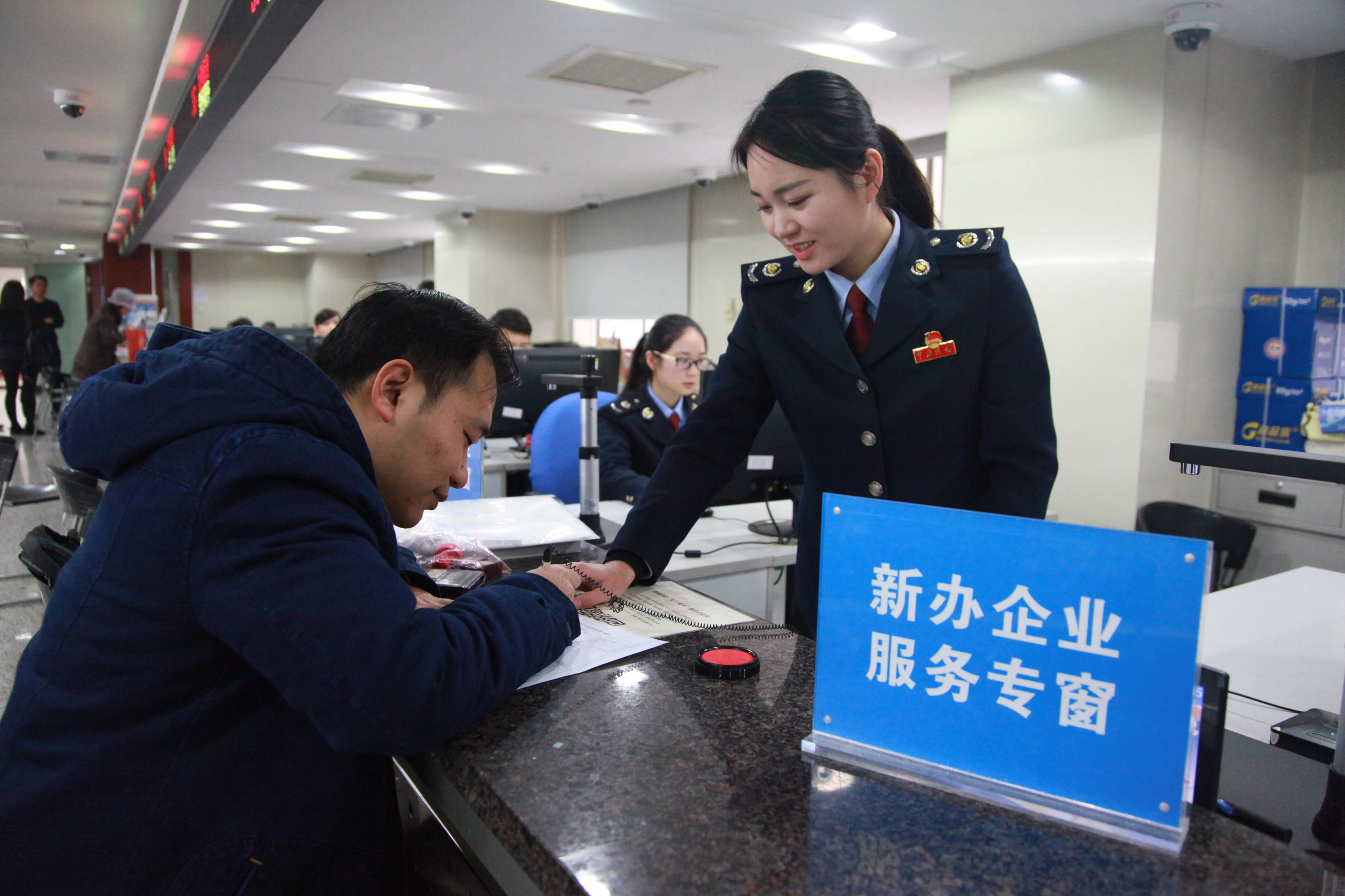 一是 “一站通”:新办企业涉税事项一站办理。区局今年1月推出的新办企业涉税事项当天办结服务,将新办企业开办10个初始化事项和首次领用发票,通过优化办税流程、简化表格文书、整合窗口功能,由10个工作日压缩为当天办结、由提交17项材料减并为4项材料、由填写10余张表格简并为1张表格、由跑多个窗口整合为1个窗口,较好地解决了新办企业因办税事项多、流程不熟悉而造成“多次跑、反复跑”问题,让新办企业“一趟头”办完开业所有涉税事项。4个月以来,平均办理时间30分钟,累计办理1755户新办企业申请,同比增长14.3%。