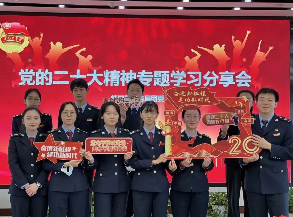 践于行,以“硬实力”勇担当。突出以学促干和学用结合,区局将学习贯彻党的二十大精神与新发展阶段税收工作的新使命、新任务紧密结合,引导党员干部发挥党员先锋模范作用,立足本职,勇挑重担,切实把会议精神转化为税收治理效能,积极投身新的组合式税费支持政策等重大改革试点,进一步提升纳税人缴费人获得感,激发区域经济发展活力。同时主动承担社会责任,全力配合文明城区创建工作,党员带头下沉社区开展志愿服务,切实发挥区局干部在创建活动中的积极作用,以实际行动和工作成效推动党的二十大精神落地生根。