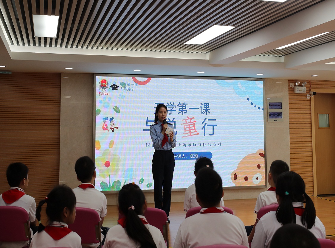 上海市虹口区税务局将普法教育搬进学校“开学第一课”,为霍山路小学三年级100多名同学带来一堂妙趣横生的税法课。