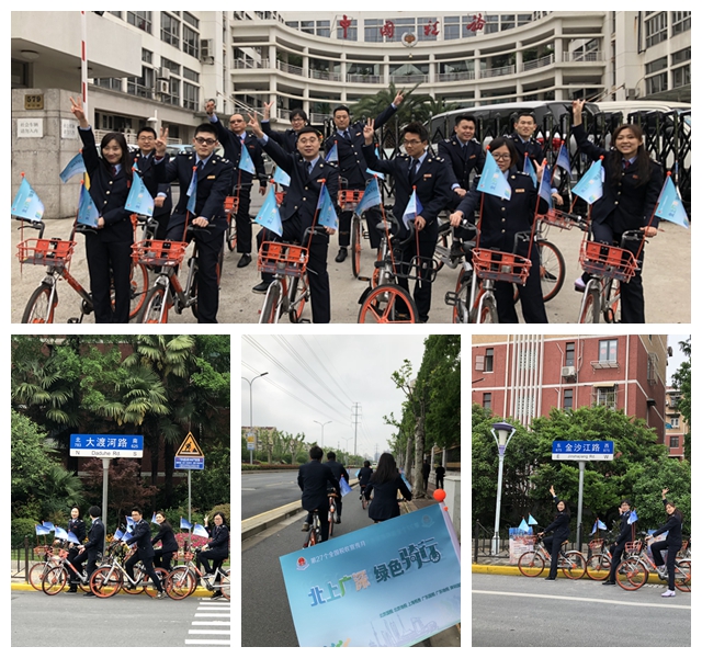4月24日,“北上广深·绿色骑行”全国通办主题活动上海站全城启动。骑行队伍骑上街头、走进商区,向上海市民宣传“全国通办”便民办税服务举措、环境保护税等绿色税制,凸显资源共享、便民办税的服务理念。