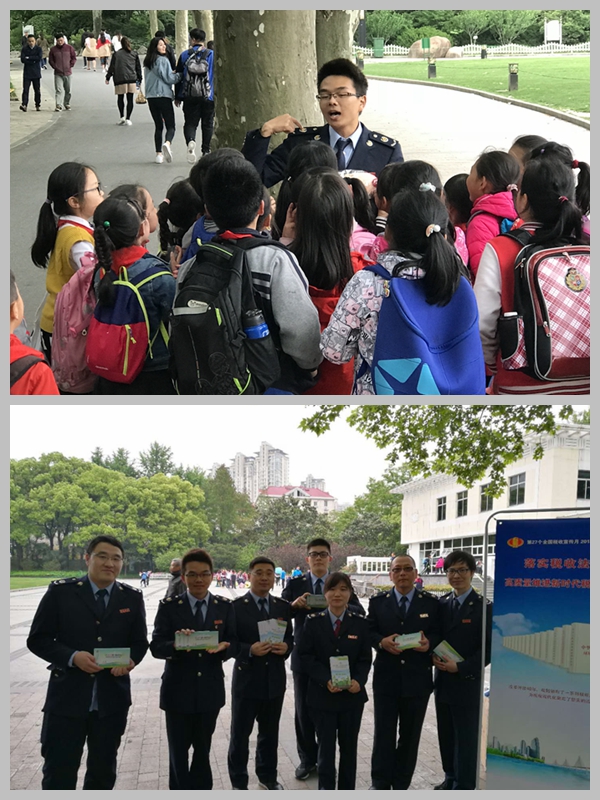 普陀税务的小哥哥还向小朋友们秀出了肩上闪亮的税徽,在他们心中种下税收的种子,共筑一个税务梦,共唱一首税宣歌。