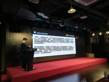 活动开始,由普陀区税务局总会计师黄河致辞,感谢园区对税宣月的大力支持和各位纳税人的出席。而后,来自四个业务科室的税务干部采取PPT演示文稿的形式,结合不同类型企业实际情况,深入浅出地为现场纳税人解读2019年深化增值税改革、小微企业所得税优惠、新个人所得税法、减征“六税两费”要点等减税降费具体政策措施。宣讲结束后,税企双方交流互动,针对减税降费相关政策细则、涉税操作实务、账务处理等疑难问题热烈讨论,税务干部耐心答疑解惑,为纳税人排忧解难。