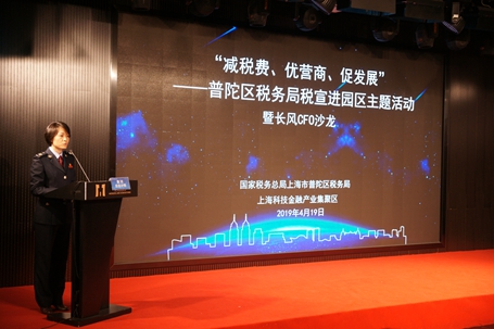 正是芳菲四月天,全国第28个税收宣传月如火如荼进行时,近日,普陀区税务局的“减税降费号”税宣之舟乘春而动、御风而行,驶入上海科技金融产业集聚区,在长风金融港的并购博物馆二楼报告厅,举办以“减税费、优营商、促发展”为主题的税宣进园区活动,面向纳税人开展“面对面”宣讲、“心贴心”交流,为园区企业送上减税降费政策“盛宴”。