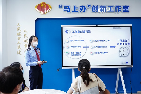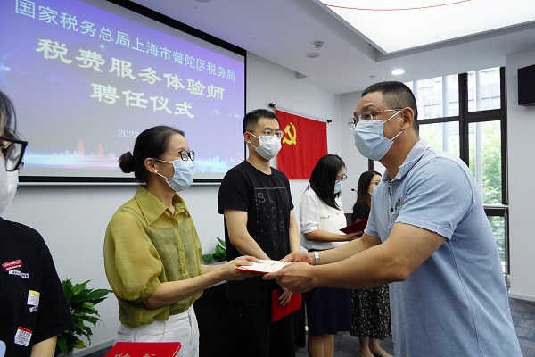 活动中,区局党委委员、副局长任书银介绍“普税汇”税费服务体验师团队自2021年成立来的工作成效,现场为8位代表颁发第二批税费服务体验师聘任书。随后,在税务干部的引导下,体验师们通过观摩体验自助办税服务区,实地参观“马上办”创新服务工作室,观看介绍视频,深度了解“马上办”工作机制,对工作室打造的集“需求响应、办税缴费、协同共治”为一体的税费服务新模式进行全方位、沉浸式的体验。