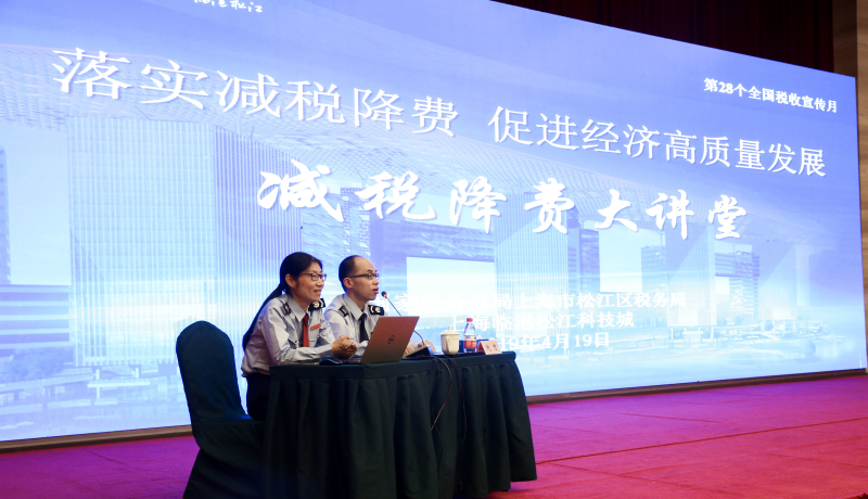 在本次讲座准备阶段,区局积极对接临港松江科技城,征求园区企业培训需求,提前搜集企业关注热点,丰富讲课内容,提高讲座的针对性和实效性,吸引了超300户企业代表报名参加。会上,区局向企业介绍今年税收宣传月的主题,推介适合企业参加的活动,并向到会企业代表发放税收宣传月系列宣传册。相关业务部门结合与会企业的行业特点,重点解读增值税改革新政、企业所得税汇算清缴等政策,并着重讲解了配套实务操作流程,用生动详实的案例帮助企业直观了解和用足用好减税降费政策。