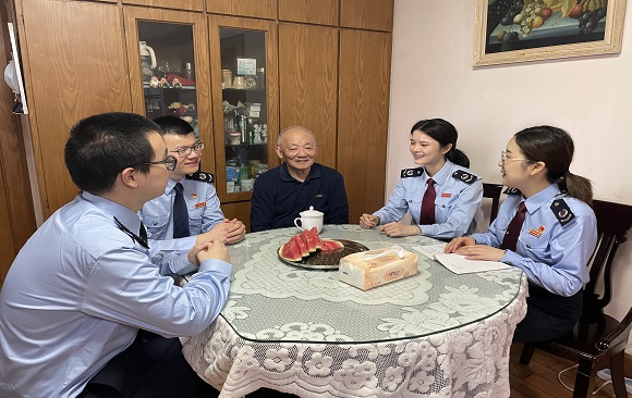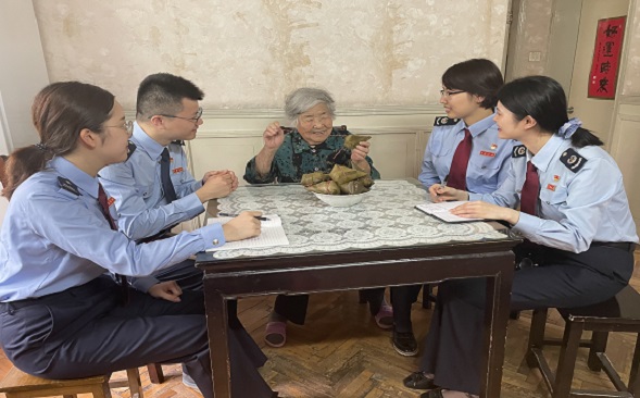 6月8日,第四税务所砺行致远青年理论学习小组联合局本部渐入“嘉”境青年理论学习小组和税悟智行青年理论学习小组共同上门探望郝现荣、许政新两位离休老干部,送上自制的粽子,传递节日的问候。