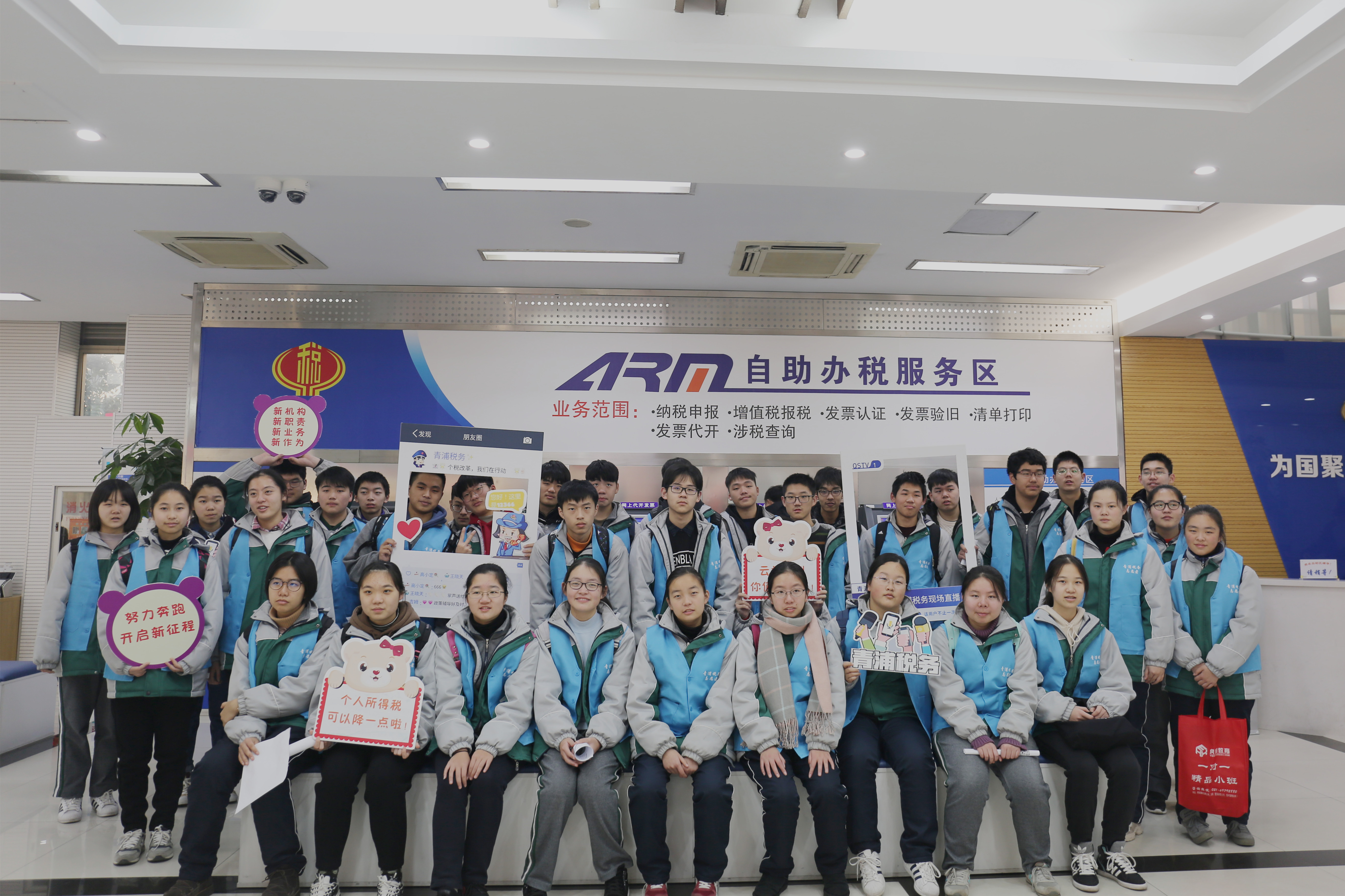 “1”个基地,让“青”少年初遇税务“蓝”。青浦区税务局携手复旦附中青浦分校、青浦区第一中学等多家学校,借助办税服务大厅平台,搭建青少年社会实践基地,开设“青初遇蓝”税校合作课程,为青年学生上好社会实践三堂课。第一堂课是了解办税大厅及自助办税服务区功能和业务,第二堂课是学习税收政策,进行随堂小测试,上一堂税法普及课,第三堂课则是体验式教学课,在带教老师“一对一”的辅导下,亲身感受办税业务。通过这三堂社会实践课,同学们对税务业务和知识有了新的了解,帮助其树立了正确的税收观念,提升社会责任感。