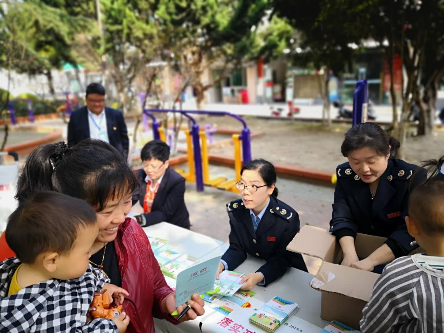 “100”家小区,推政策走出去惠千家。青浦区税务局充分利用税收普法第二课堂,携手学校,培养学生成为税宣志愿者,同时,积极组织全局25个党支部,通过结对活动在百家小区开展税收知识学习讨论,以张贴海报、发放材料、当面辅导等多种形式为居民答疑解难,带动家庭和周围人群学税法、懂税法。
