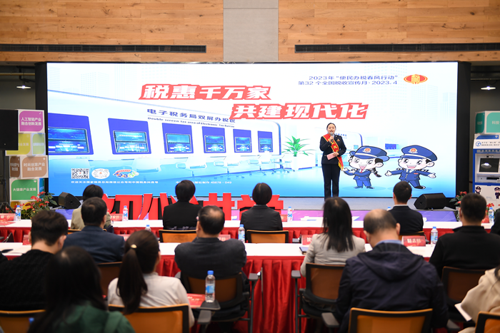 活动中,税务青年干部李安娜进行了《我与税宣月的故事》演讲。她说:“从走街串巷的政策宣讲,到线上云端的润物无声,32年税收宣传月,改变的是税收宣传的内容和形式,不变的是‘税收取之于民、用之于民’的初心。”