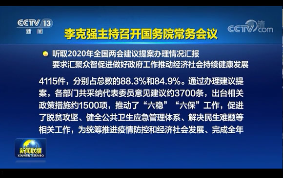 ·李克强主持召开国务院常务会 听取2020年全国两会建议提案办理情况汇报