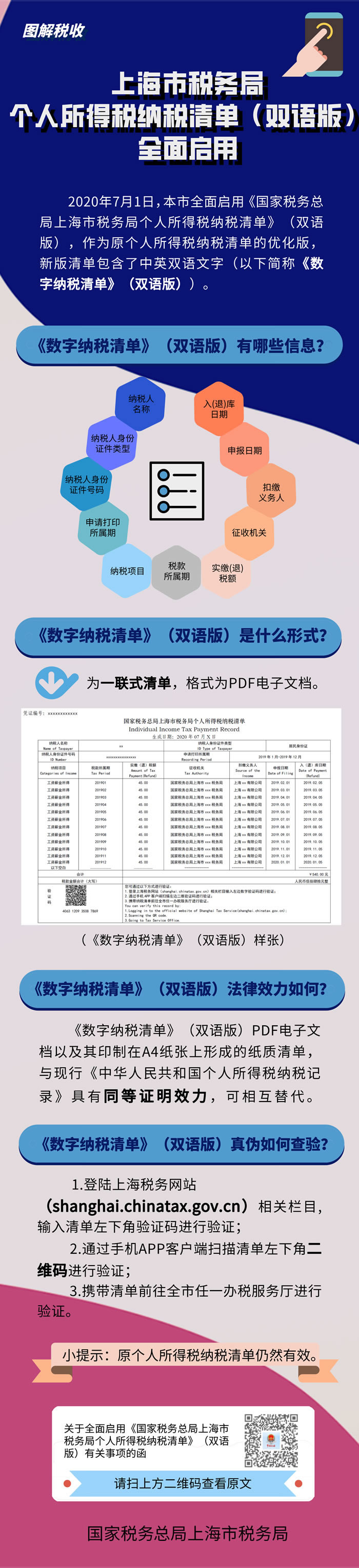 图解税收:上海市税务局个人所得税纳税清单(双语版)全面启用