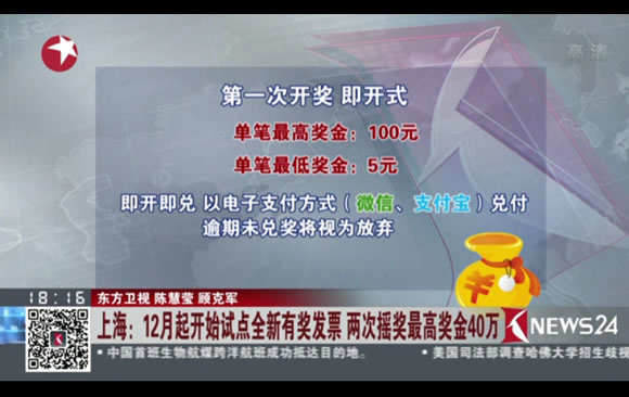 ·看看新闻网:上海:12月起开始试点全新有奖发票 两次摇奖最高奖金40万