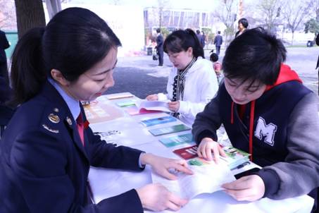 樱花树下,郁金芬芳。活动中,区局领导干部迈步在前,干部职工精神抖擞,边走边向社会公众派发税法宣传手册,推送“黄浦税务”微信公众号。