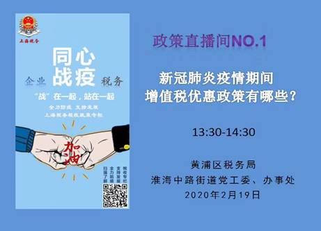 在税企同心战疫时期,为进一步创新税收宣传形式,加大税务部门政策落实的正向引导,区局办公室与货劳科、核算分析科协同配合,携手淮海路街道党工委、办事处,于2月19日开设首期政策直播课,第一时间为淮海街道内知名楼宇进行政策“在线打包”。