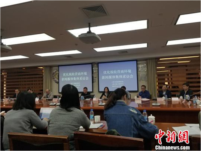 上海市税务局11月16日召开新闻发布会,深入阐述实施《优化营商环境提升纳税便利度实施方案》。 中新网 图
