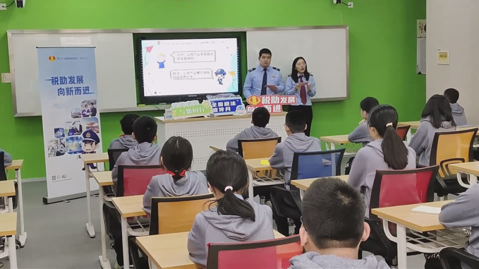 第一稽查局走进上海市震旦外国语中学开展税法宣传活动,通过现场授课、税收知识趣味问答等形式,用通俗易懂的语言、生动有趣的故事将税法宣传搬进学生们的课堂,为师生科普税收知识。