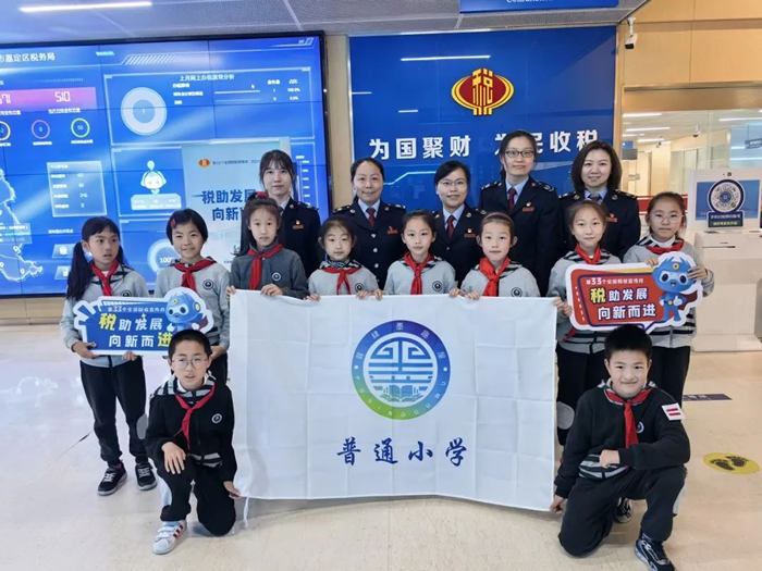 嘉定区税务局邀请普通小学的同学们走进办税服务大厅,开展“童眼看税 童心学税 童言说税”红领巾税法宣传活动。通过税务干部讲解税法、体验智慧办税缴费新功能、争当税法小小宣传员等方式,深化青少年税收法治教育。