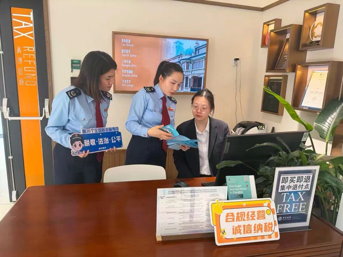 静安区税务局走进张园“即买即退”全市退付点,开展第35个税收宣传月活动,面向商户积极宣传规范开具退税申请单的重要性,讲解申请单填写准确、信息完整等要求,帮助境外旅客更好享受离境退税便利,营造依法纳税、放心消费的良好氛围。