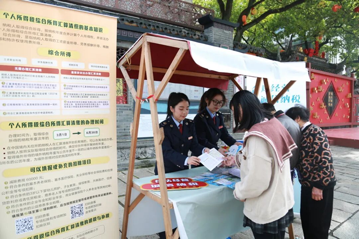 奉贤区税务局走进青溪老街,面向游客市民开展便民税法宣传。现场“零距离”讲解个税年度汇算等政策要点,一对一答疑,进一步营造尊法、学法、守法、用法的良好氛围。