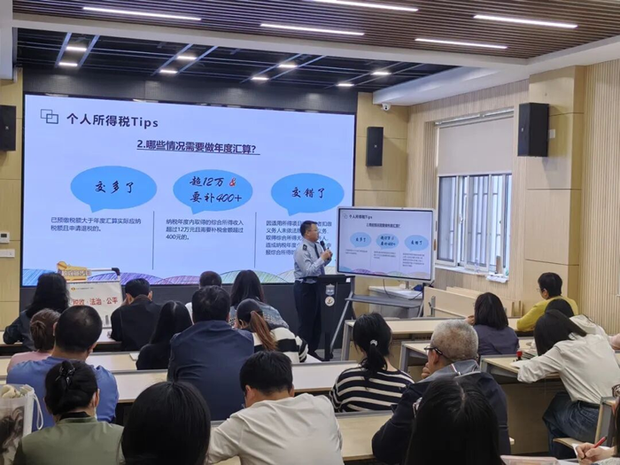 第五稽查局走进复兴教育集团成员学校,开展个人所得税政策专题宣讲,围绕个税年度汇算申报流程、专项附加扣除填报、相关热点难点问题等内容,通过政策宣讲、实操演示与现场答疑等方式,增强纳税人诚信意识,推动形成依法纳税、主动遵从的良好氛围。