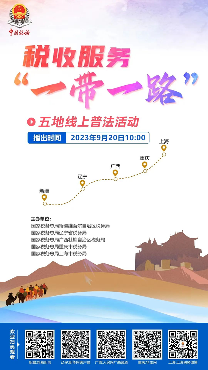 今天上午,新疆、辽宁、广西、重庆、上海等地税务部门联合开展“税收服务‘一带一路’”五省区市线上普法活动。五地税务部门邀请“走出去”企业现身说法,讲述税收助力“一带一路”的真实故事和实际体验,从税企两个角度视角讲述“一带一路”倡议十年来给国内企业带来的新机遇,讲述十年来“一带一路”倡议下,相关国家和地区互惠互利的故事。