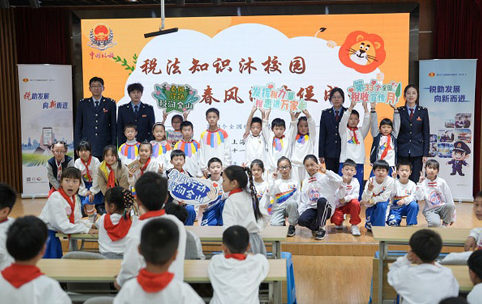 为了更好地宣传和普及税法知识,培养税收法治观念,4月19日,金山区税务局组织青年干部赴朱泾小学开展“税法知识沐校园 春风润苗促成长”主题税收宣传活动。青年干部通过税收主题动漫、税法知识问答、税种蹲游戏等充满趣味性的互动,生动形象地讲解税收的重要性及税收的职能作用等税收基础知识,将税收知识趣味化、形象化,让税收法治观念在同学们心中生根发芽