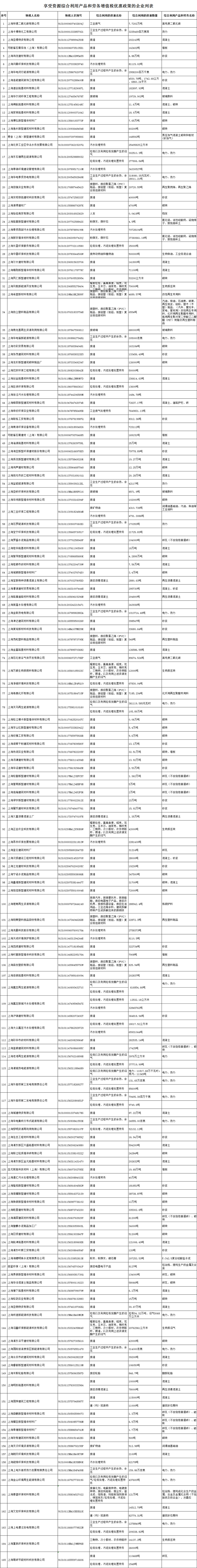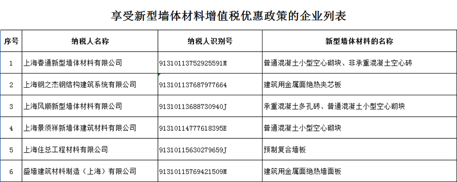 根据《关于新型墙体材料增值税政策的通知》(财税〔2015〕73号)和《关于印发<资源综合利用产品和劳务增值税优惠目录>的通知》(财税〔2015〕78号)的规定,现将本市2021年享受上述增值税即征即退政策的纳税人的相关信息公示。如有不同意见,可向国家税务总局上海市税务局(货物和劳务税处)反映。