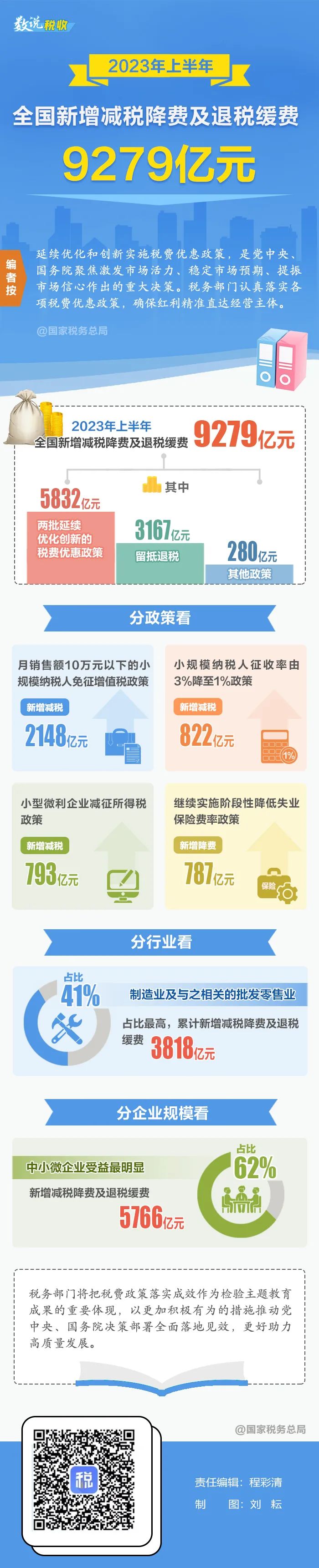 2023年上半年全国新增减税降费及退税缓费9279亿元!一图速览哪些行业企业受益